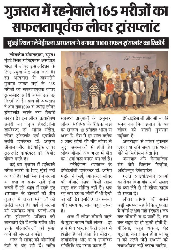 Call UsFirst and Only center to perform 1000 + Liver transplant and 150+ Pediatric Liver Transplant in western India